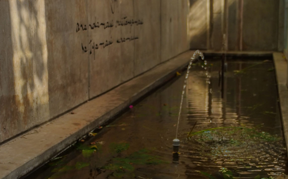 The ground floor has a meditation hall, small library and study, bathroom and kitchenette. A biopond running along the eastern wall of the site provides a sense of serenity and helps cool off the radiating heat coming from the east.